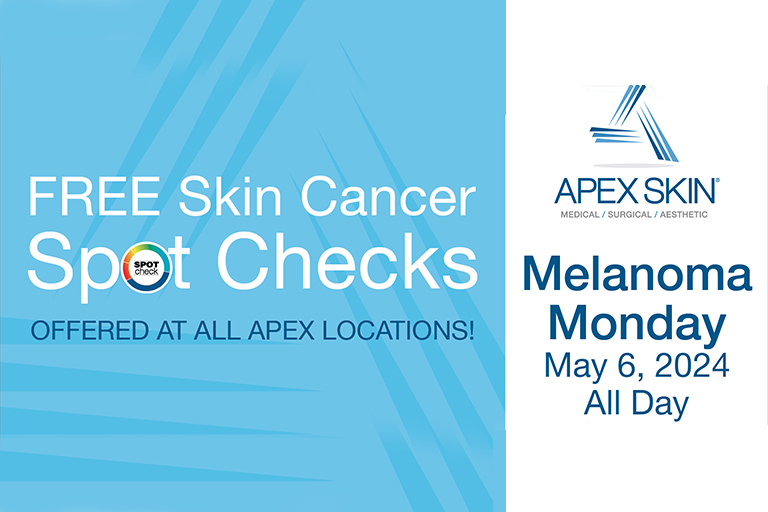 Experience counts when it comes to skin cancer. Apex Skin offers full body skin cancer screenings at all locations. Our SPOTcheck program ensures that any suspicious lesion is seen within 24 hours. And our Mohs Skin cancer surgery is unmatched, with 3 board certified Mohs surgeons offering quick access to expert care.